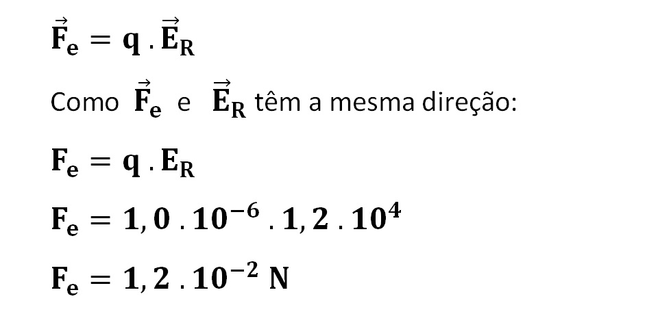 Agora imagine uma outra partícula com carga elétrica q= 1,5μC colocada exatamente sobre o ponto P. Qual seria a força elétrica Fe sobre ela?